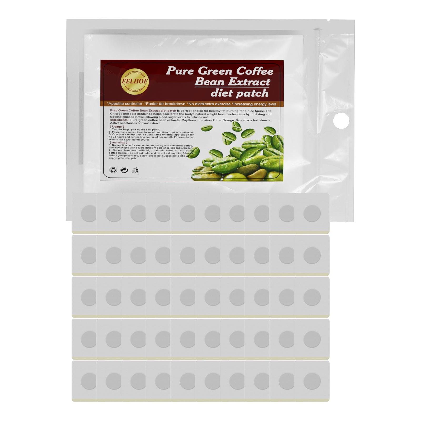 Our belly button stickers contain pure green coffee bean extract, immature bitter orange, Scutellaria. It can. Solve fat and swelling problems, improve your metabolism, easily lose weight, pure organic, tried and tested remedy. Its use is simple: first tear the bag, pick up the small piece, and then pass the small piece on the belly button, then secure it with adhesive, and then one piece a day, sustainable external application for 12-24 hours, generally a month of treatment. For better results, try a two-month course. And can preform and promote the body's natural body shaping mechanisms.